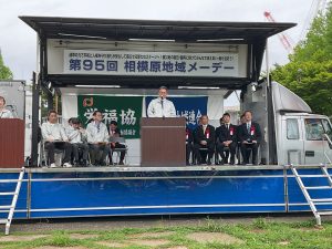 2024年4月27日相模大野中央公園にて、第95回相模原地域メーデーを開催しました。心配していた雨も降らず、無事開催することができました。 子ども達に人気のヒーローショーや「防災グッズ」をテーマとした大抽選会は盛大に盛り […]